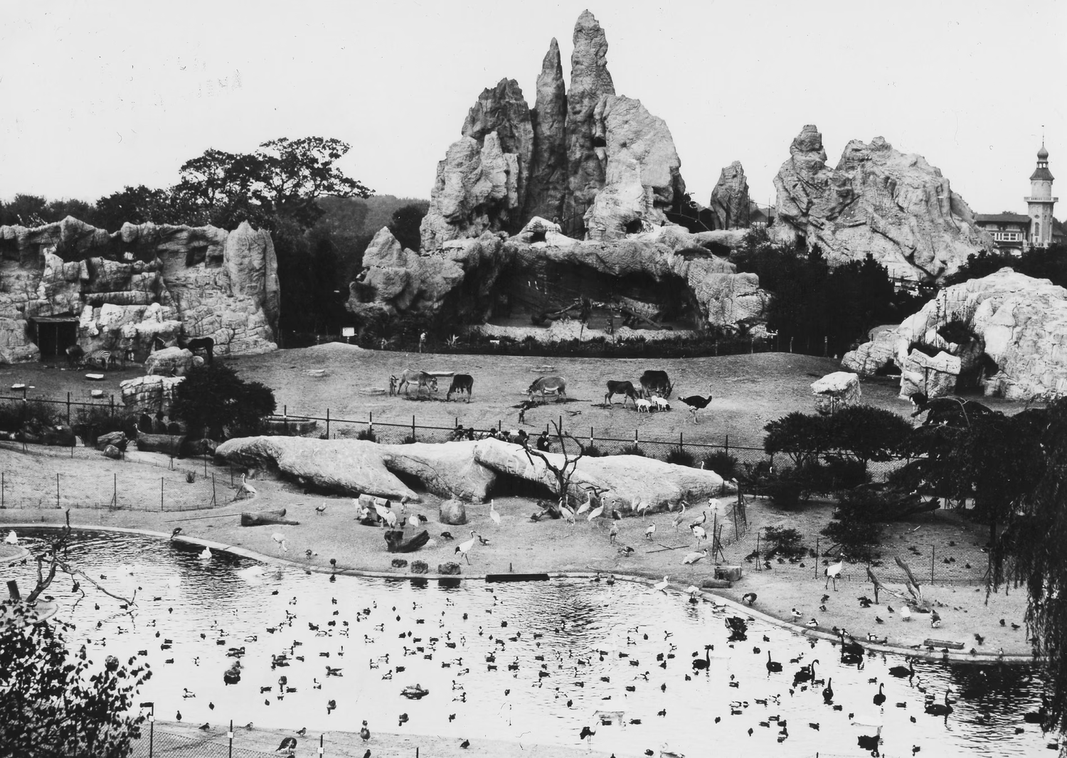 A major shift occurred in 1907 with the opening of the first ‘barless zoo’ in Stellingen, Hamburg by Carl Hagenbeck. It was the first zoo to feature open-air enclosures without traditional cages, using moats and trenches to create naturalistic habitats and allow visitors to observe animals in a more realistic setting. The idea of the ‘environmental zoo’ soon spread worldwide, marking a turning point in zoo design.